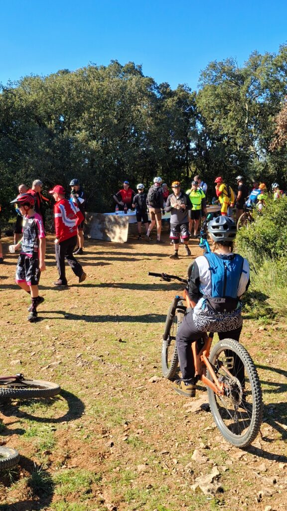 Au cours de ces 3 descentes, et surtout pendant l’attente des remontées et des départs, je retrouve la famille de la DH occitane et auvergnate: les anciens qui racontent des conneries (notamment Ivan, Romain), les plus jeunes qui me vouvoient, ceux qui débutent et sont déjà en stress pour leur première course… etc Que c’est bon cette ambiance !