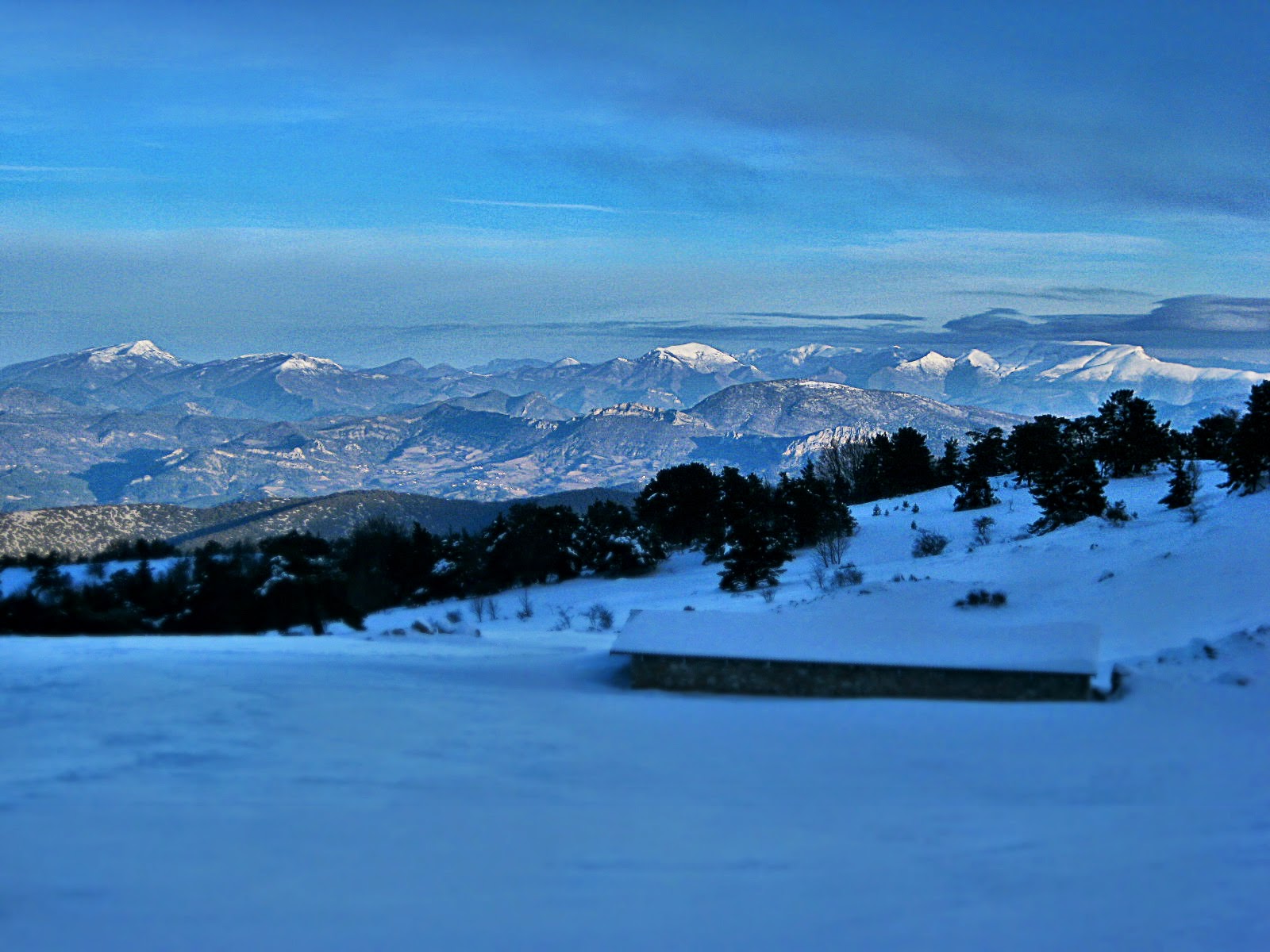 A l’Est, presqu’au bout de la route du mont-Serein, on distingue les montagnes des Alpes de Haute-Provence.