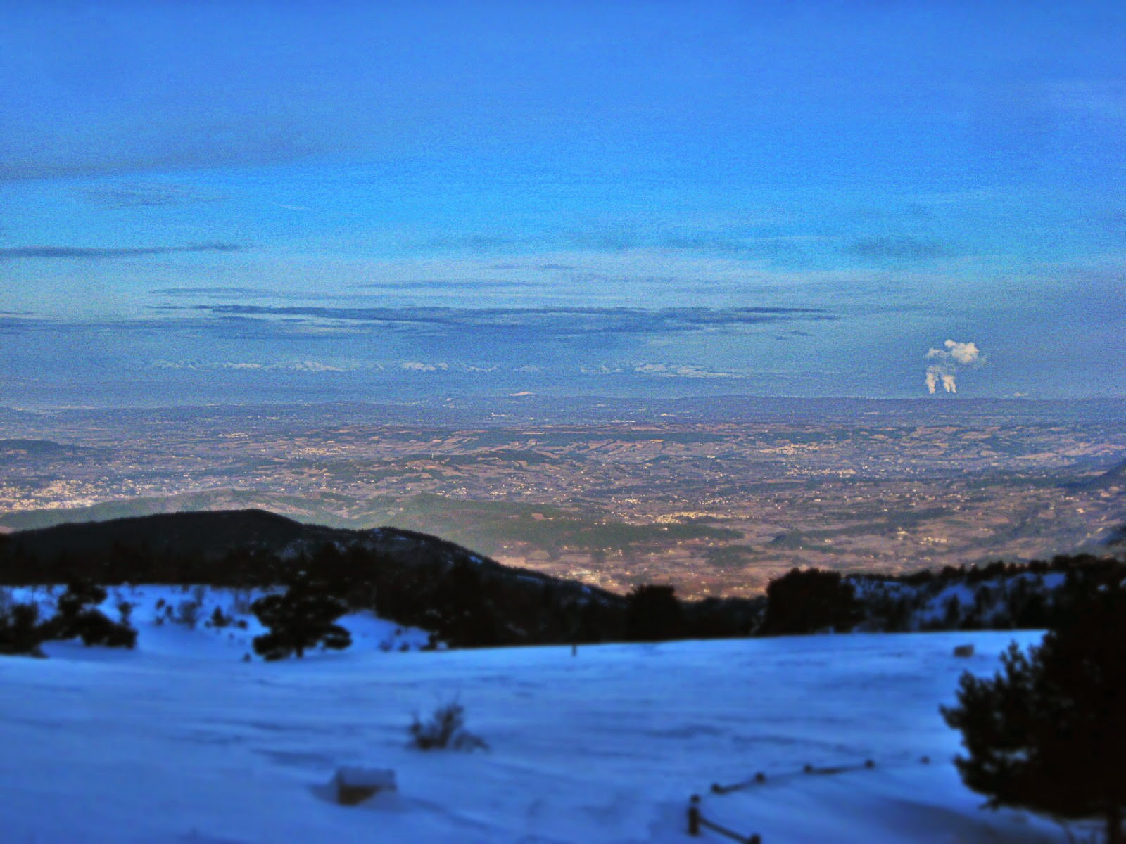 A l’Est, presqu’au bout de la route du mont-Serein, on distingue les montagnes des Alpes de Haute-Provence.