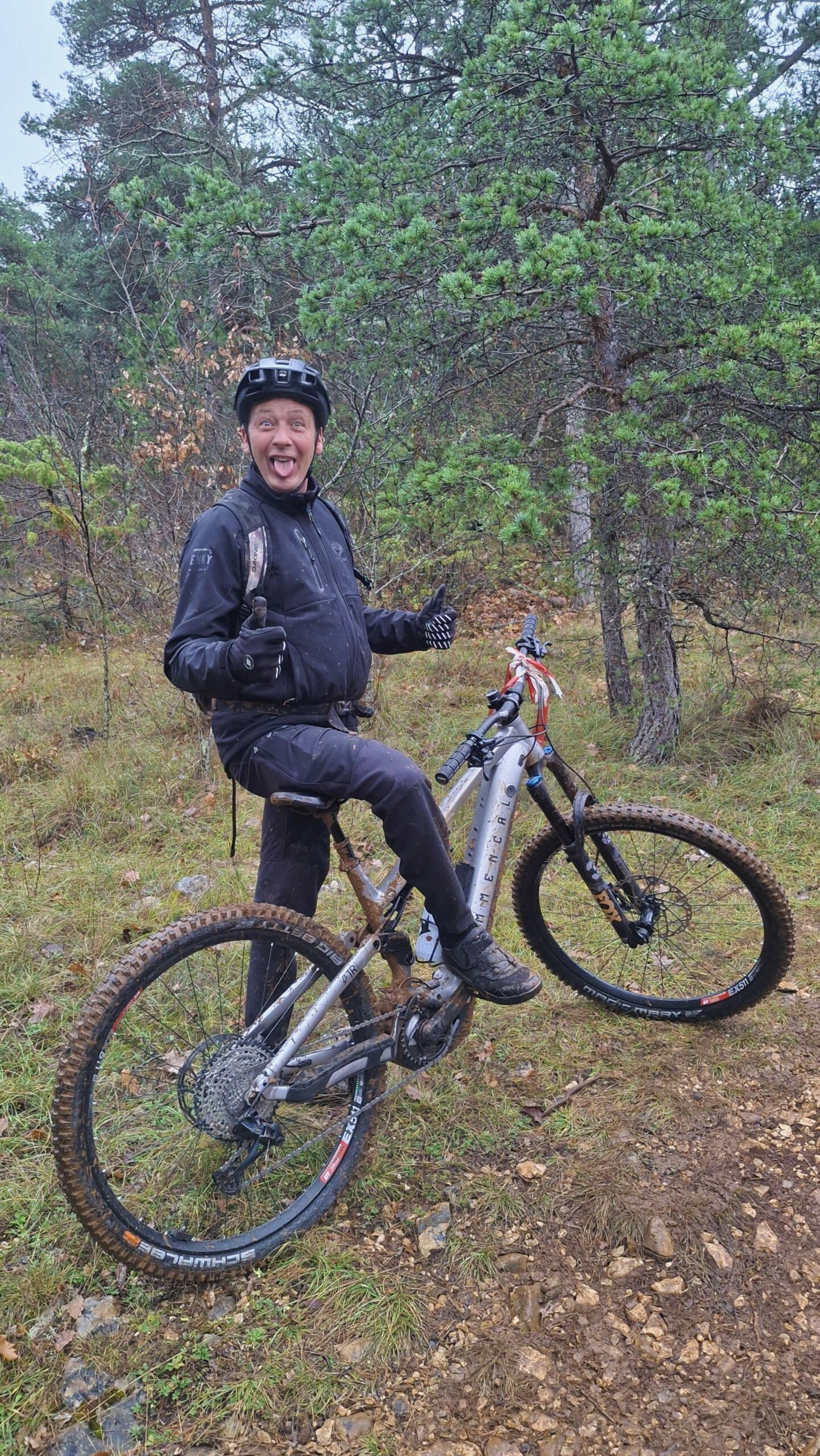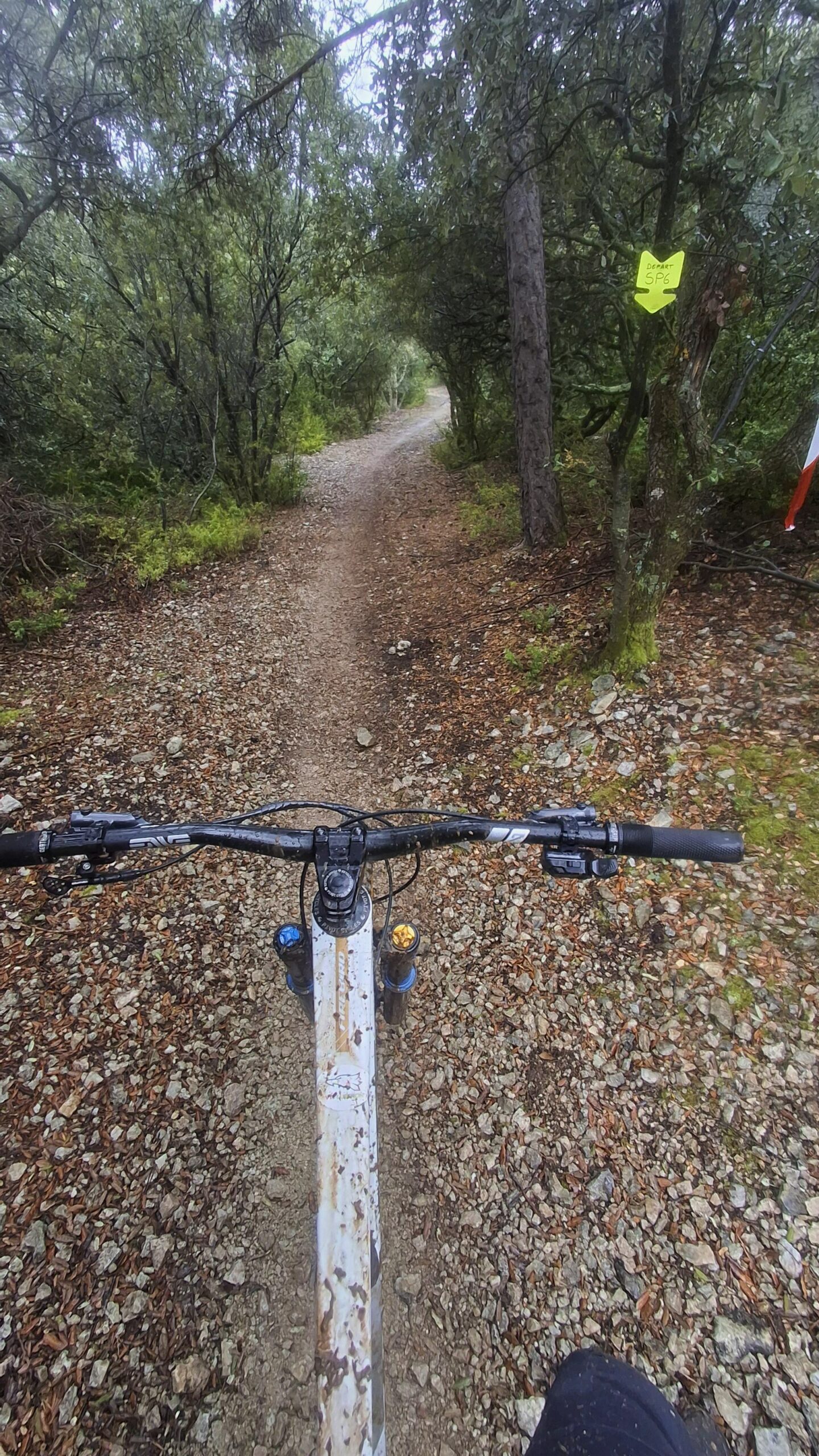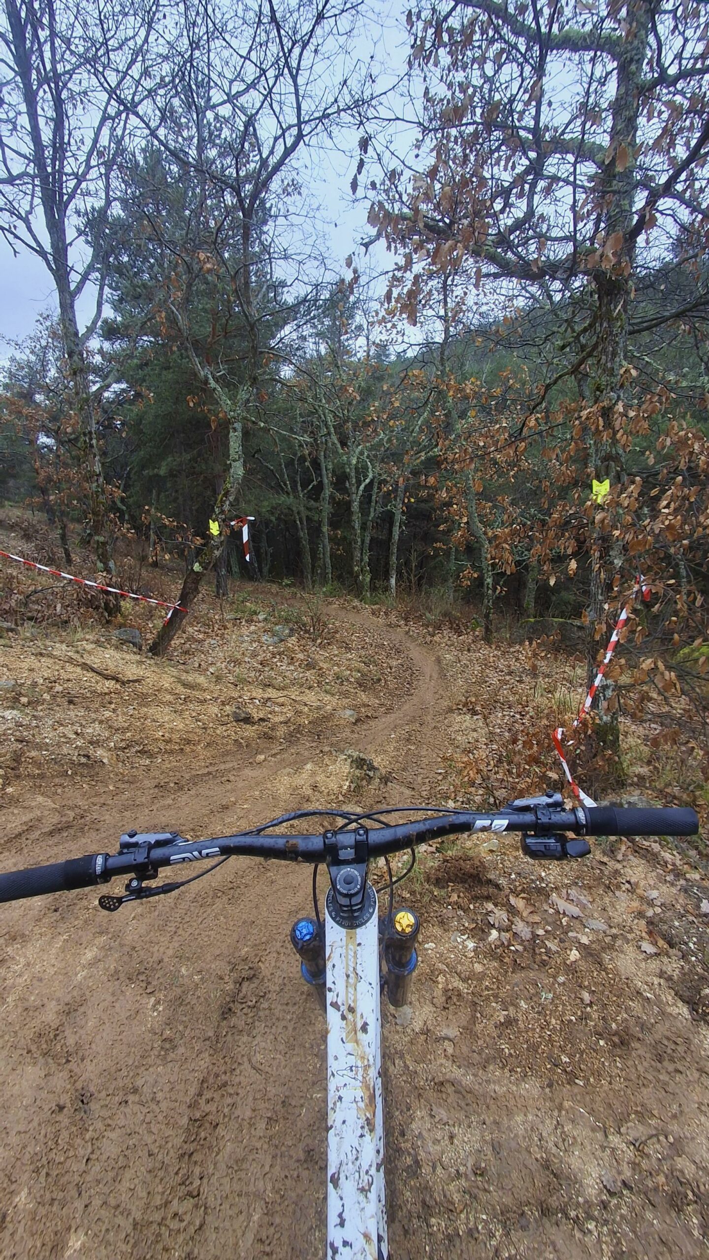 La 4 est une belle succession de virages arrondis où tu fuses entre les arbres avec quelques racines, quelques cailloux. La 5, c’est celle que j’avais adoré en 2023: à fond tout le long sur un single lisse, un truc sans technique mais qu’on ne rencontre pas si souvent. Enfin, la 6, où je croise Gregory qui fait le signaleur, est encore une spéciale rapide (entre les buis) sur le haut puis elle devient technique en bas avec de la pente, quelques dalles (j’ai manqué de me sortir sur le dernier passage engagé), et une belle ornière dans les graviers à la fin.