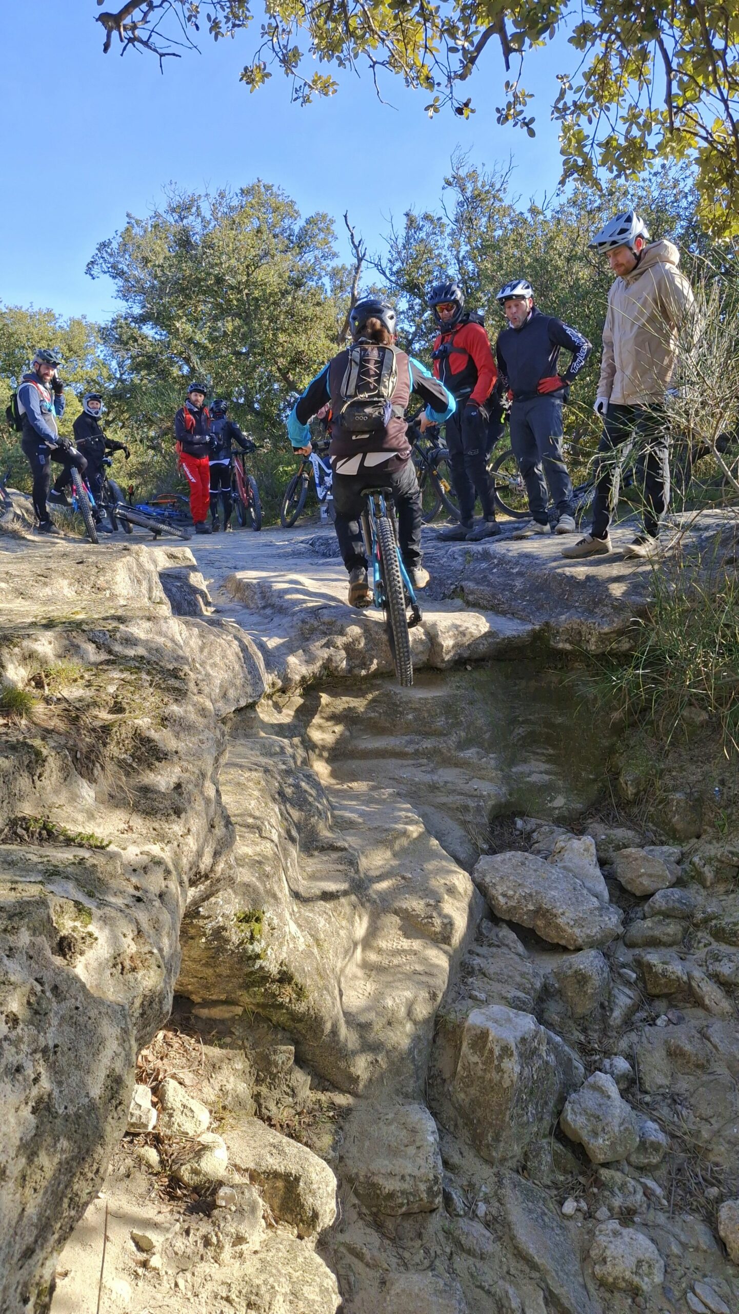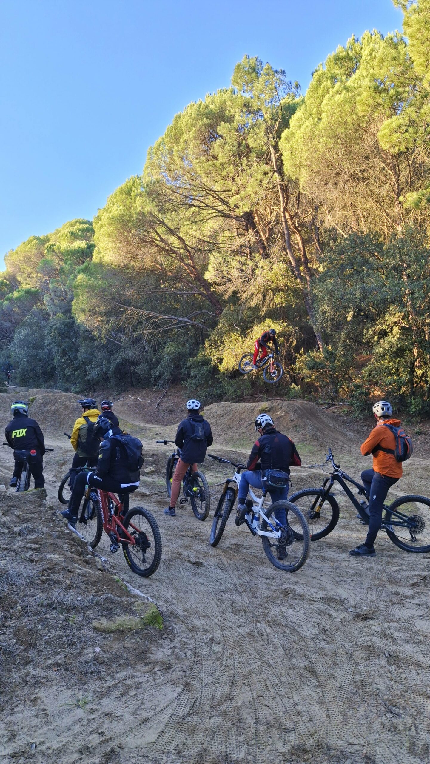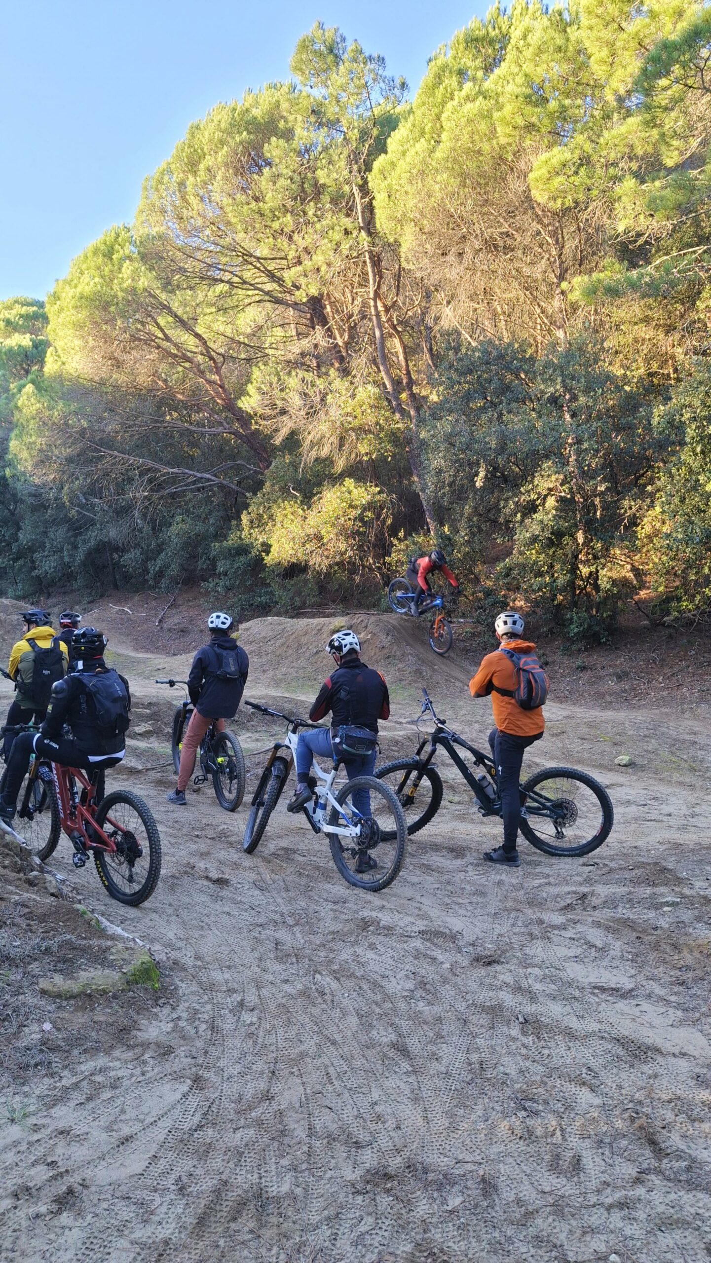 Et aujourd’hui, c’étaient 19 riders sur les pistes et sentiers du Barry, avec sûrement un bon 1000m d+(?). Romain et moi, on a guidé tout le monde de façon assez improvisée pour rouler sur la Descente des Écoliers, les descentes au dessus du Leclerc et celle de l’Argentane.