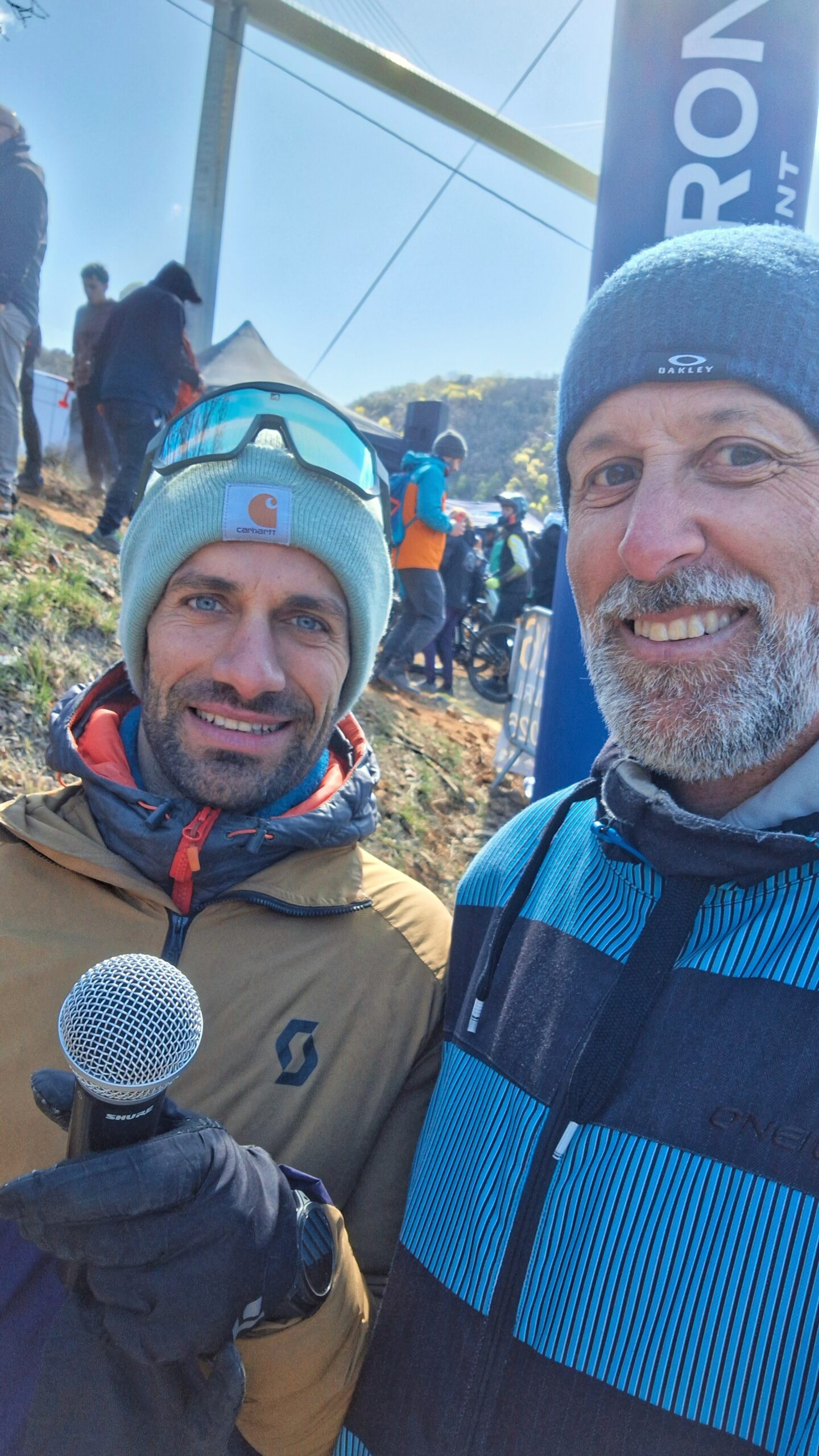 L’attente pour le départ de cette manche est terrible. On se cache derrière une voiture avec les masters, pour tenter de limiter la fraicheur du vent. Je crois que je n’ai jamais pris un départ aussi froid, sauf peut-être sur le glacier de la Mountain Of Hell aux 2 Alpes en 2007 avant le réchauffement climatique ? C’est dire !